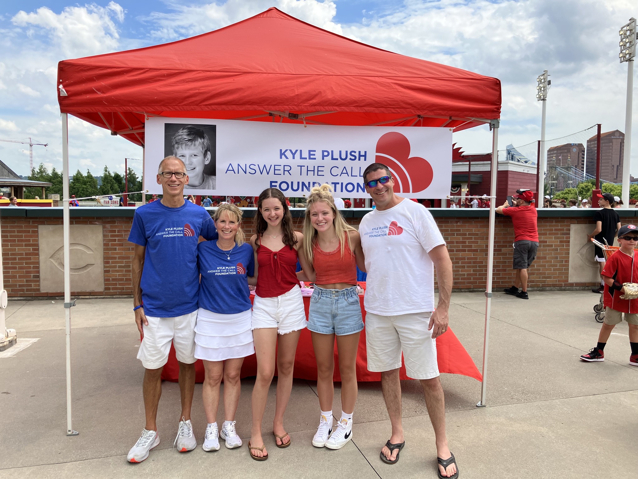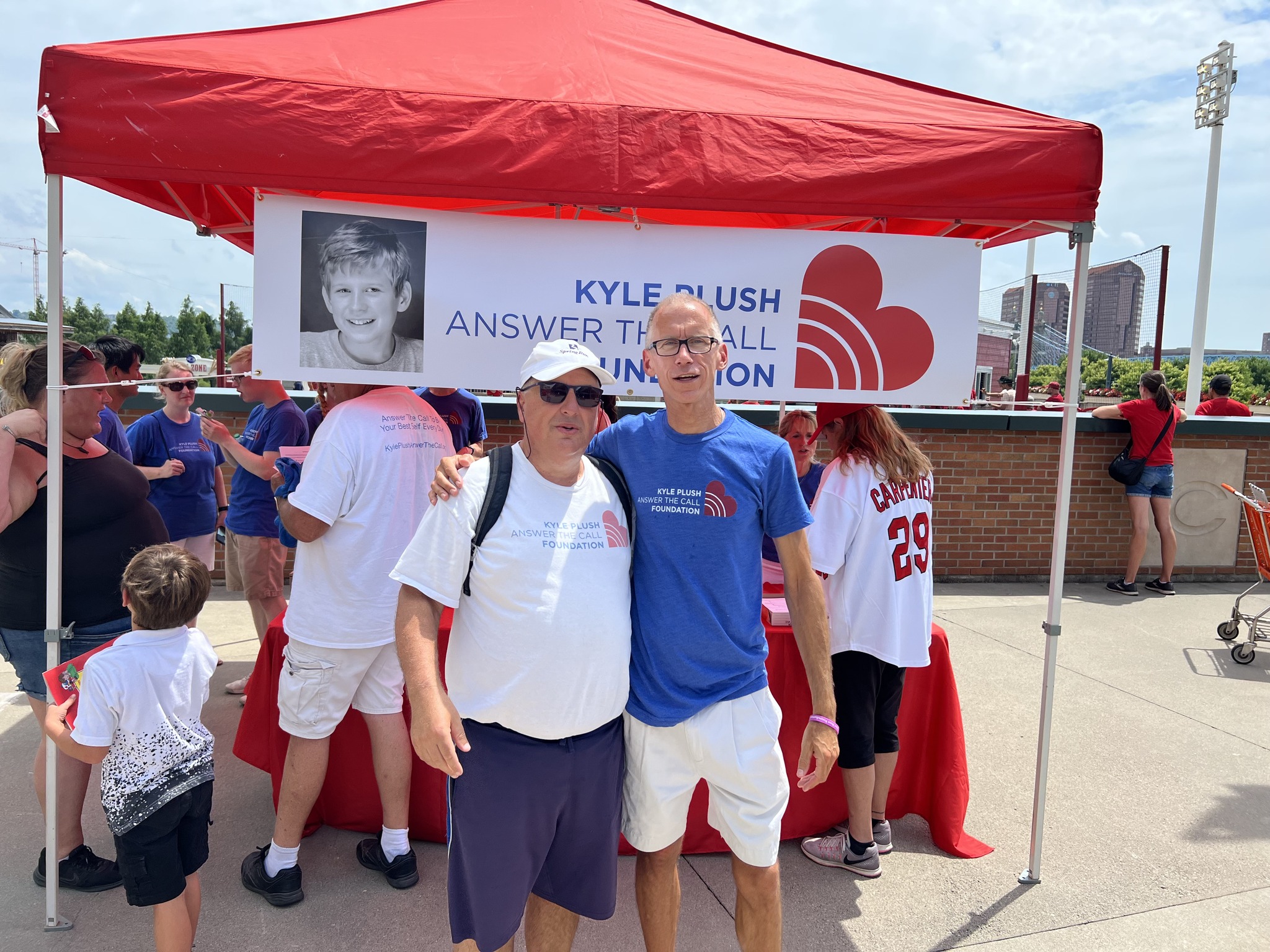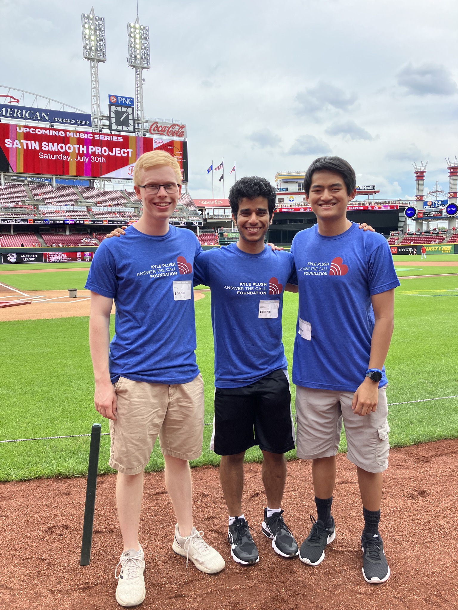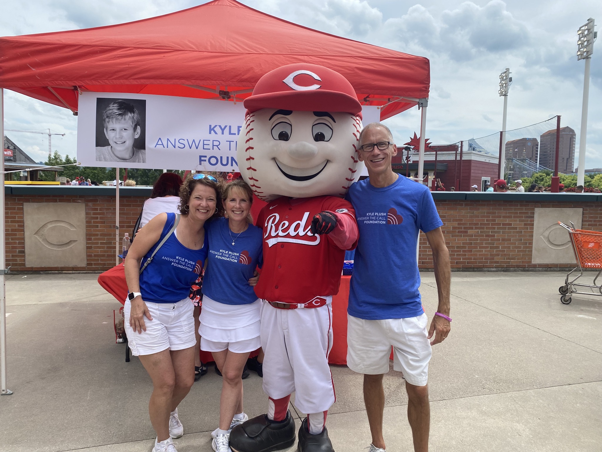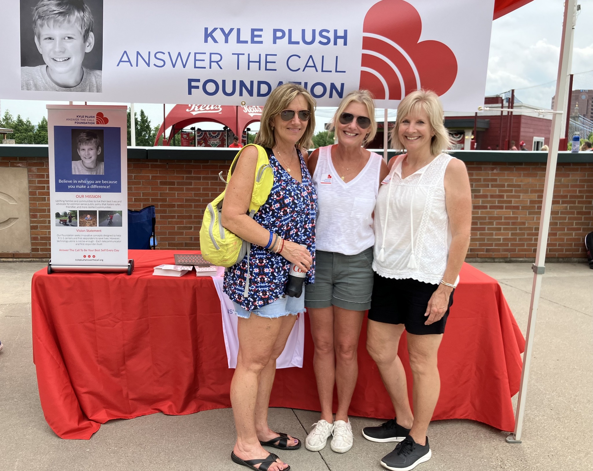 A HUGE Shoutout to the Cincinnati Reds for sharing KPATC Cell Phone Safety Tips with Reds Fans at the Reds vs Cardinals game on Sunday, July 24. A few of Kyle’s friends who created the Cell Phone Safety Tip videos were able to join us on the field… Matt Wabler, Kayzad Bharucha and Adam Chen. Kyle’s friend, Gabe Lykins and Seven Hills Advisor, David Brott, were on the Jumbo screen sharing tips on “How to find your exact location on your cell phone” and friend, Krish Gupta, shared “Setting Up Siri so you can call 911”. Reds Fans visited the KPATC booth to learn about Cell Phone Safety Tips and the importance of signing up for Smart911. Wonderful to see so many friends and volunteers at the game to support the KPATC mission! You can find these safety tips for yourself at https://kyleplushanswerthecall.org/cell-phone-safety-tips/.