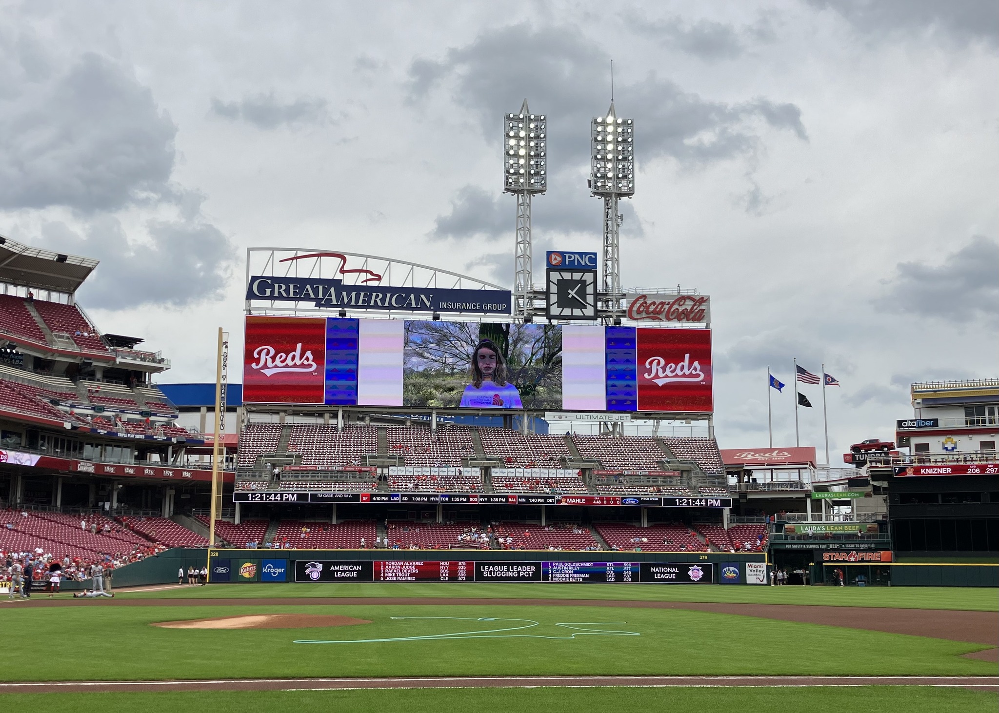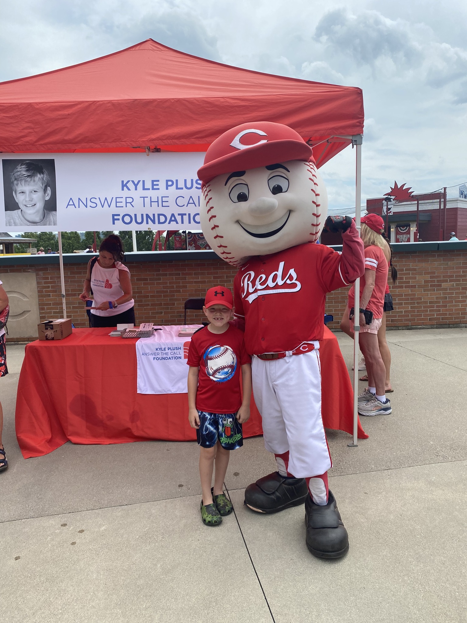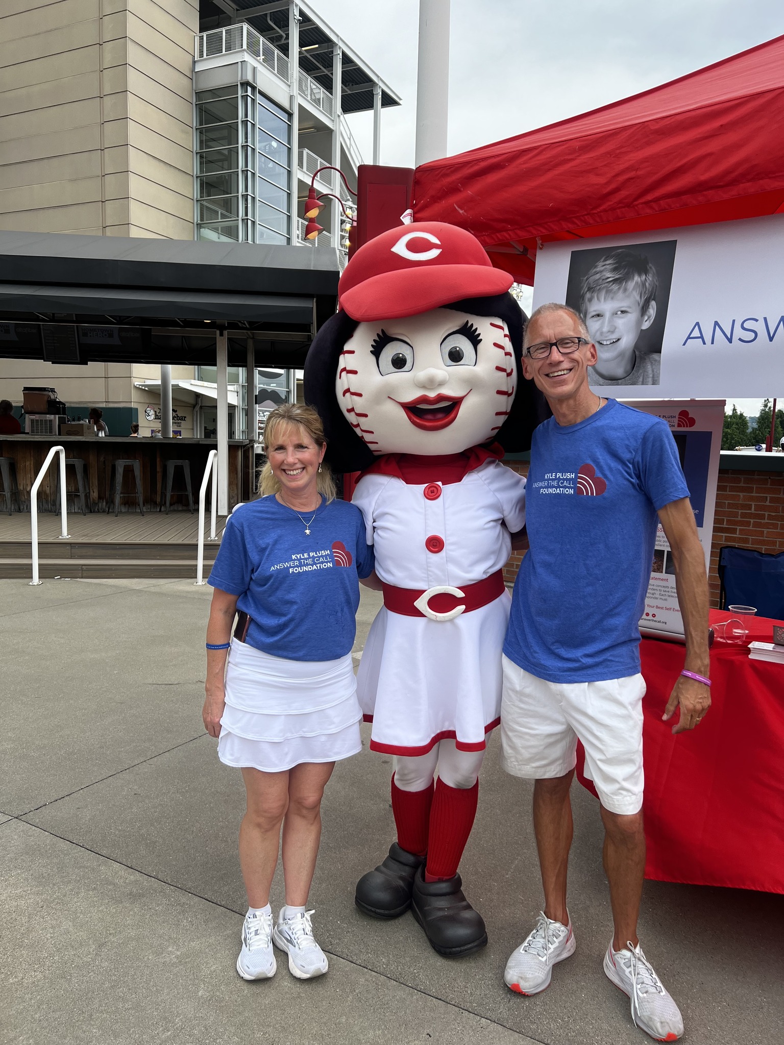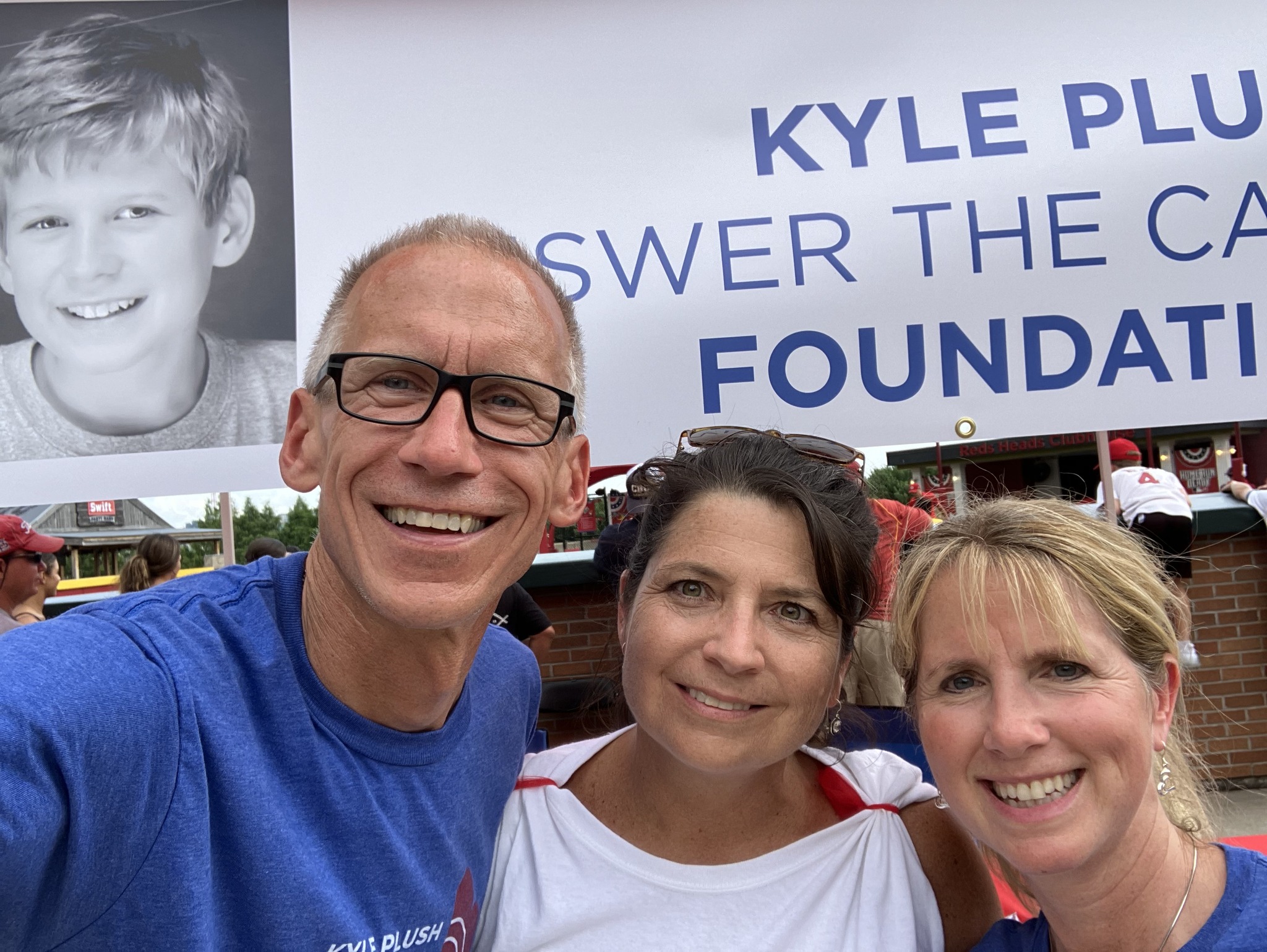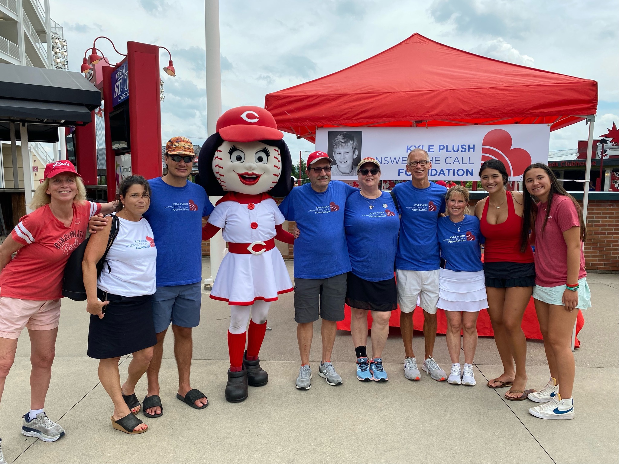 A HUGE Shoutout to the Cincinnati Reds for sharing KPATC Cell Phone Safety Tips with Reds Fans at the Reds vs Cardinals game on Sunday, July 24. A few of Kyle’s friends who created the Cell Phone Safety Tip videos were able to join us on the field… Matt Wabler, Kayzad Bharucha and Adam Chen. Kyle’s friend, Gabe Lykins and Seven Hills Advisor, David Brott, were on the Jumbo screen sharing tips on “How to find your exact location on your cell phone” and friend, Krish Gupta, shared “Setting Up Siri so you can call 911”. Reds Fans visited the KPATC booth to learn about Cell Phone Safety Tips and the importance of signing up for Smart911. Wonderful to see so many friends and volunteers at the game to support the KPATC mission! You can find these safety tips for yourself at https://kyleplushanswerthecall.org/cell-phone-safety-tips/.